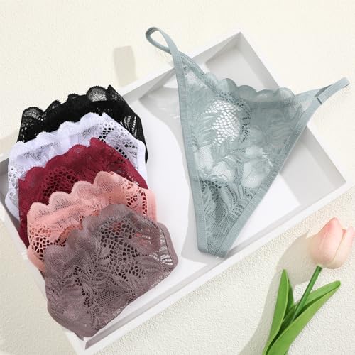ALL OF ME 6er Pack G String Tanga Damen Spitze Unterhosen Sexy Unterwäsche Dessous Frauen Lace Underwear Women Panties Mehrpack S-XL