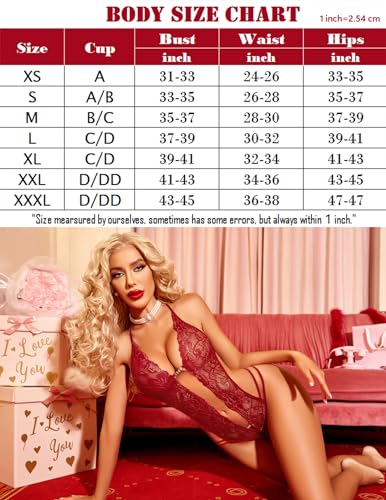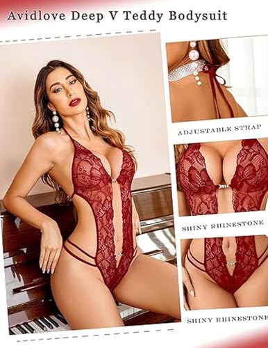 Avidlove Damen Einteiliger Body Dessous Babydoll Bodysuit Tiefem V-Ausschnitt Lingerie