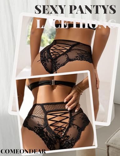 comeondear Übergröße Pantys Damen mit Spitze Erotische Höschen Transparent Große Größen Sexy Unterwäsche String Tanga Unterhosen Slip Atmungsaktiv Reizwäsche für Mollige Frauen Hipster