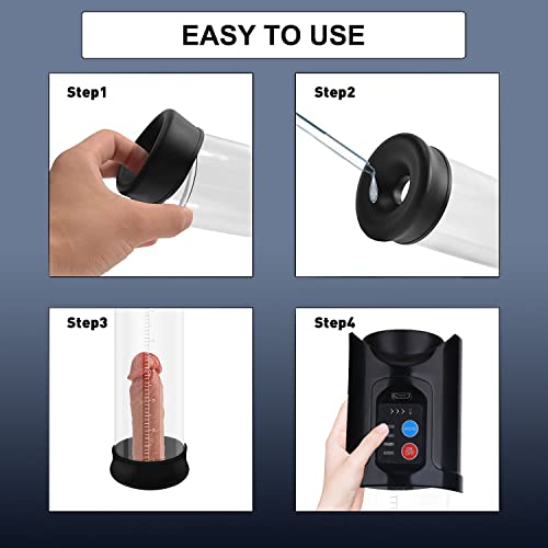【4 leistungsstarke, sichere Saugmodi】 Die Trainings-Penispumpen verfügen über 4 Druckstufen, um den großen Penis schrittweise zu trainieren. Benutzen Sie den ersten (niedrigsten) Geschwindigkeitsmodus für den frühen Gebrauch, dann können Sie nach und nach andere Modi mit höherer Geschwindigkeit ausprobieren. Verwenden Sie nicht direkt den stärksten Unterdruck.