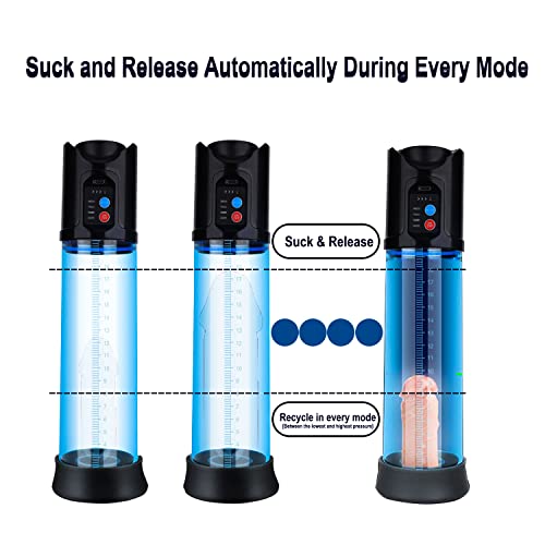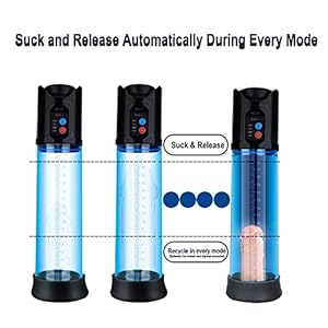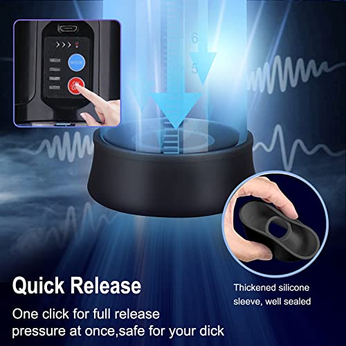【2 aktualisierte Funktionen】Automatische zyklische Saug-Freigabemodi und eine Schnelllösetaste. Wenn der Druck im Zylinder ein bestimmtes Niveau erreicht, wird er automatisch abgelassen und saugt dann wieder an. Dein Schwanz kann zyklisch trainieren. Drücken Sie den Einschaltknopf, um die Saugkraft der Penisvergrößerungspumpe freizugeben, wenn Sie sich unwohl fühlen oder die Leistung schnell reduzieren möchten. Sie ist viel sicherer als andere Penisvakuumpumpen auf dem Markt.