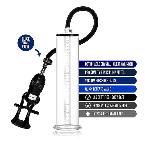 💪 Praktisch:Penispumpe ist mit einer praktischen Handpumpe ausgestattet, mit der du den Ausgabe aufbauen kannst. Zudem verfügt die Pumpe über eine Messskala.Stülpe den transparenten Zylinder einfach mit der über Deinen Penis und genieße das prickelnde Vakuum, das Du mithilfe der Handpumpe erzeugst.