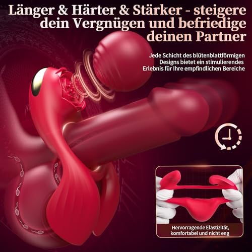 🔥【3in1 Penis Vibrator】: Der Einsatz eines Penisringe ermöglicht gleichzeitige C-Punkt-Vibration, Perineum- und Hodenmassage sowie Penisstimulation, um eine beispiellose Freude zu erleben. Das einzigartige Blütendesign umgibt den männlichen Hodensack eng mit zwei Blütenblättern die Ihnen eine starke Stimulation geben und Ihren Blutfluss verlangsamen, wodurch Ihr großer Kerl sofort wächst Länge und Umfang länger als je zuvor, während die Rose als Klitoris Vibrator für sie dient und für euch beide eine starke Vibrationswirkung bietet. Wenn alle erotischen Bereiche gleichzeitig stimuliert werden, kann die Explosion des synchronen Genusses euch beide an die Grenze des Entzückens bringen