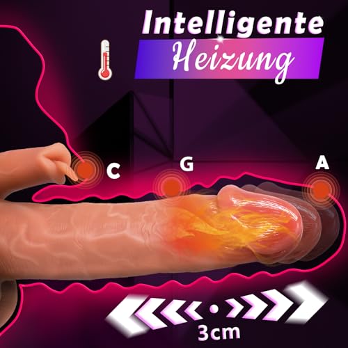 4 In 1 Realistischer Anal Dildo: Dieser große Silikon-Dildo stößt mit 7 pulsierenden Geschwindigkeiten auf und ab für tiefes Vergnügen. Die Spitze dreht sich, um Ihren G-Punkt aufzurühren. Sexspielzeug für die Frau summt aka mit 10 Vibration&Lecking Funktionen. Alldem ungeachtet fühlt sich das Design der Heizfunktion wie ein heißer Liebhaber in einer kalten Nacht an.