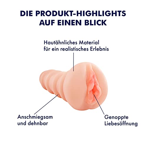 Mit diesem anschmiegsamen Vagina-Masturbator werden Deine Solospiele zu unvergesslichen Lust-Abenteuern. Das weiche Material umspielt leidenschaftlich Dein bestes Stück und massiert Dich mit seinen ausgeprägten Noppen bis zur Ekstase. Die ausgeprägten Schamlippen lächeln Dich dabei einladend an und sorgen nicht nur für eine realistische Optik, sondern auch für ein naturnahes Lustspiel. [n][n][b2]Material und Pflege[/b2] Dieser dehnbare Lustspender ist aus TPE hergestellt und fühlt sich besonders authentisch an. Das Material ist geruchlos und kommt ganz ohne Weichmacher aus. Mit seiner anschmiegsamen Beschaffenheit ist TPE der menschlichen Haut sehr ähnlich und bietet Dir so ein realistisches Lusterlebnis. Für den maximalen Spaß raten wir Dir zu einem Gleitmittel. Möchtest Du das Toy reinigen, kannst Du das mit Wasser und milder Seife tun und anschließend einen antibakteriellen Toycleaner verwenden.