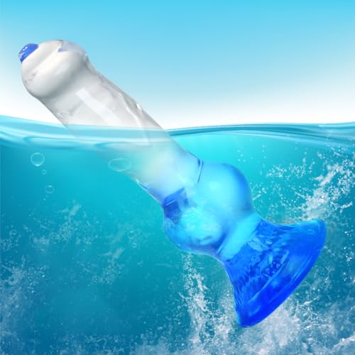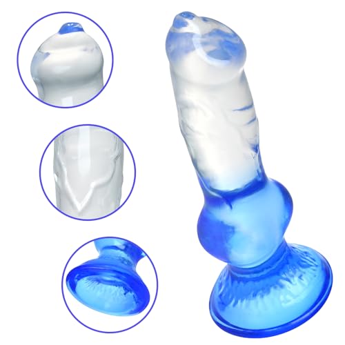 ❤【Einzigartiges Farben-Kontrast】 Dieser simulierte Hundedildo nimmt einen einzigartigen Färbeprozess an, der obere Fetzen ist transparent und der untere Fetzen wird allmählich blau. Ein durchgehend harmonisches Farbschema, ansprechend und ästhetisch.