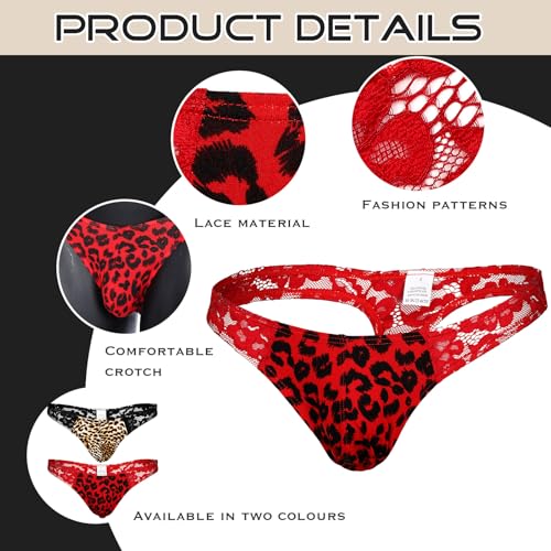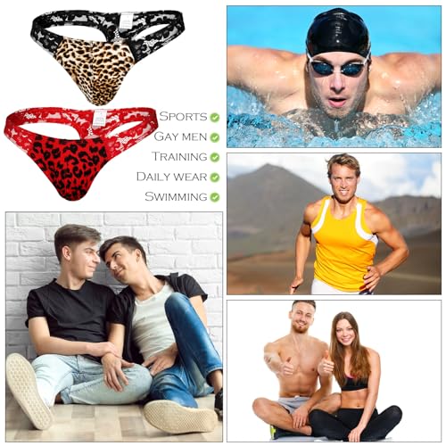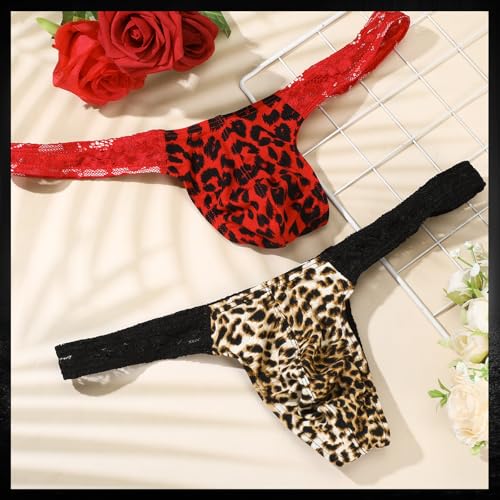 Sintege 2 Herren Tanga Unterwäsche Spitze Mesh Unterhose mit Niedriger Taille Bikini Höschen für Männer