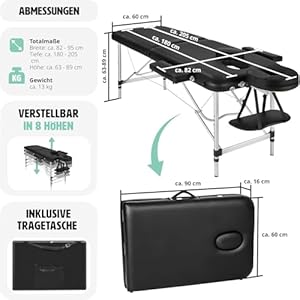 INDIVIDUELLE ANPASSUNG: Unsere Massageliege klappbar richtet sich sämtliche nach Dir. Verstelle Höhe, Beine, Nacken und Arme nach Deinen Wünschen. Das herausnehmbare Gesichtspolster und die einstellbare Armlehne bieten zusätzlichen Komfort. Perfekt für Massagen, als Kosmetikliege oder sogar als Tattoo Liege.