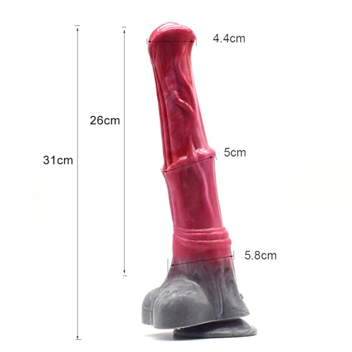 【Realistischer Tierdildo】Gesamtlänge: 31 cm; Durchmesser: 5 cm. Die Größe dieses Pferdepenis ist einfach ausgeflippt. Wenn Sie es verwenden, ist Es einfach so perfekt in Länge und Umfang, Sie werden es lieben, als lang es ist und als es Sie bis zur Basis ohne Lücke ausfüllt.